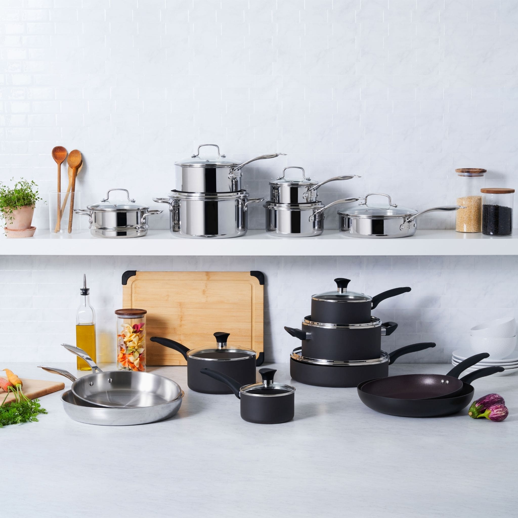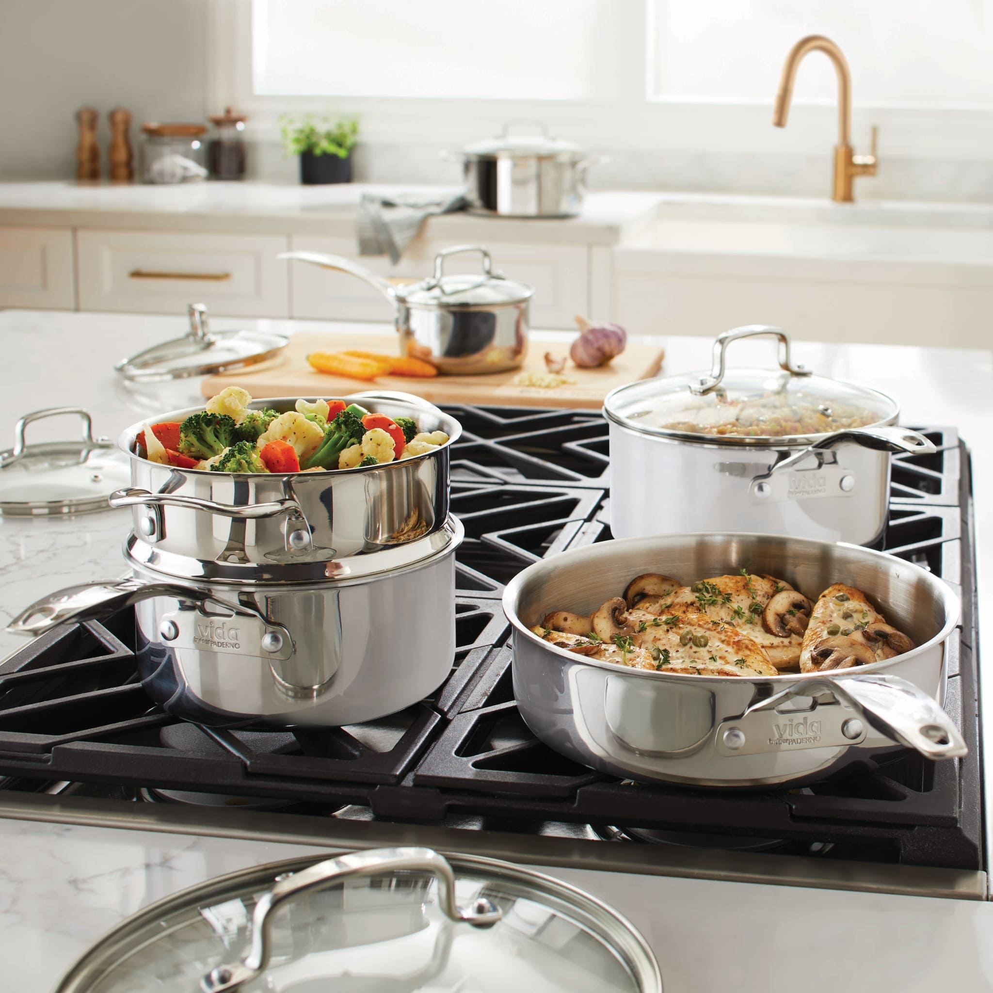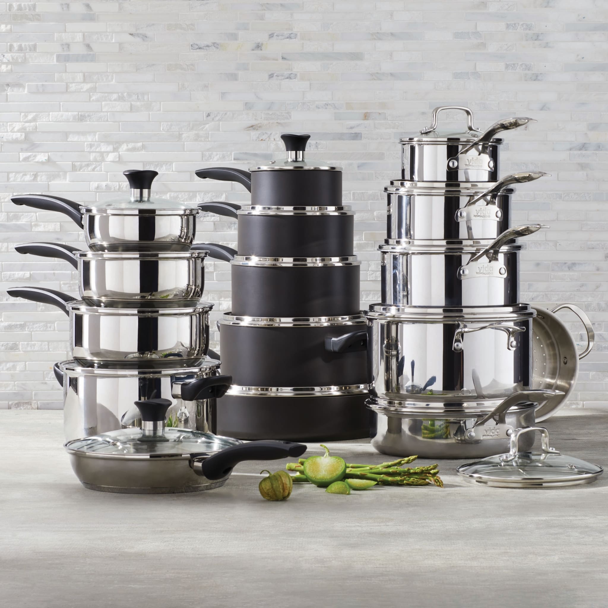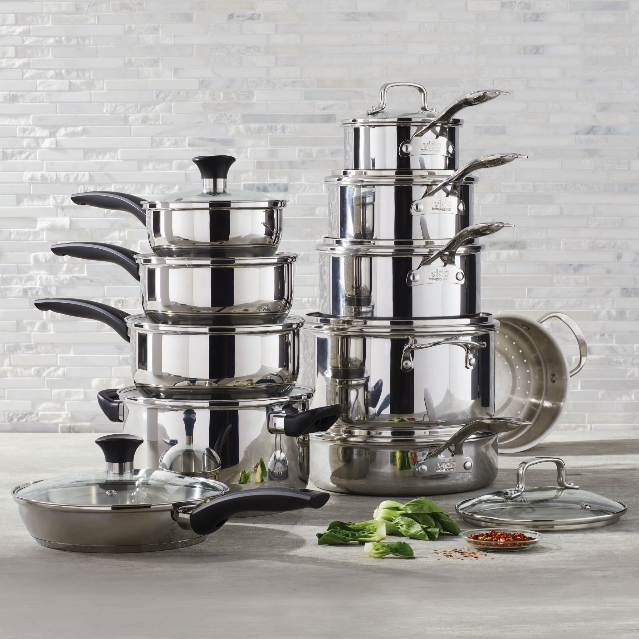 Bought the 12-piece Vida Elite Series at Canadian Tire knowing Paderno is made in Canada and a quality item. Opened the box to find they felt cheap and thin/lightweight. Gave them a wash and tried out the larger pan to make a few pancakes - they stuck to the pan which we found odd. We cooked on medium-low heat with butter like normal. Looked at the box to make sure we bought the right item and found it's made in China!! WTF?